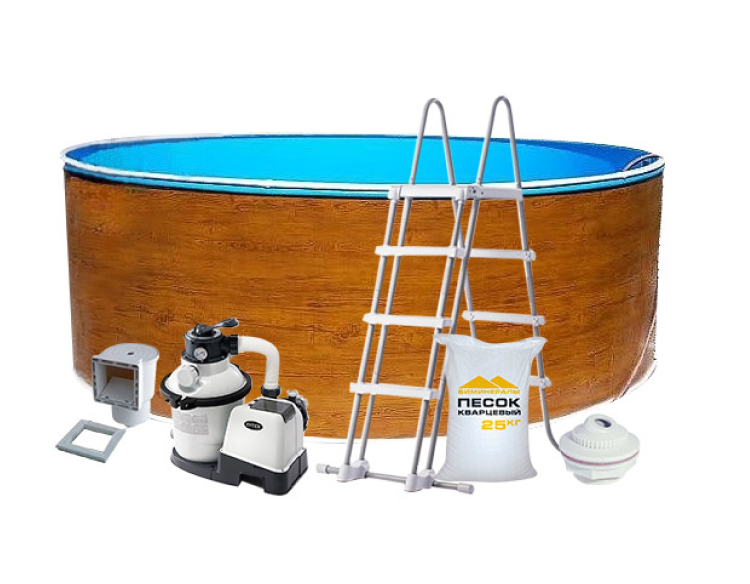 Бассейн Лагуна морозоустойчивый 4.00х1.25м круглый светлое дерево (песчаный фильтр, лестница, кварцевый песок, скиммер, форсунка) 40013-02